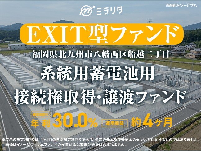 再生可能エネルギーの導入拡大に伴い、発電過不足を調整する系統用蓄電池の注目度が急上昇しています。特に本プロジェクトが位置する北九州市エリアは、日本屈指の巨大工業地帯を抱えるエネルギー需給の要衝であり、蓄電池インフラの需要が極めて高い地域です。参入業者が急増する中、今後さらなる事業権利への需要と価値の高まりが見込まれています。 - 早期の契約締結「明確な出口戦略(EXIT)」